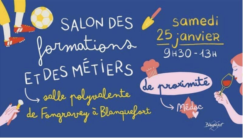 - SALON DES FORMATIONS ET DES METIERS DE BLANQUEFORT, le samedi 24 janvier 2026 de 9h30 à 13h00, salle polyvalente de Fongravey