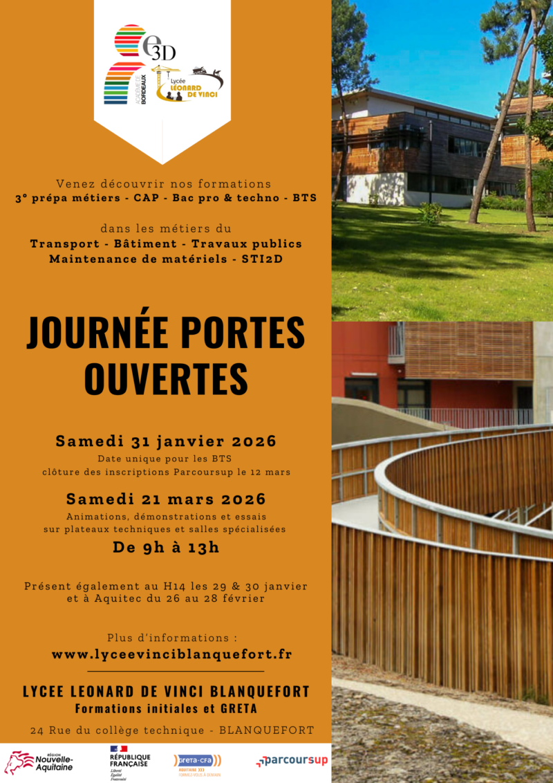 - JOURNÉES PORTES OUVERTES du lycée le samedi 31 janvier 2026 de 9h à 12h30